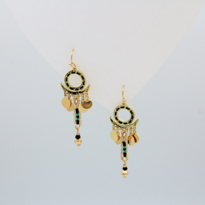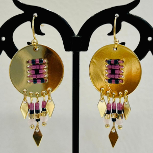 Découvrez ces magnifiques boucles d’oreilles dorées ornées de délicats pendentifs en forme de losanges et de perles colorées. Ces bijoux élégants et sophistiqués sublimeront à merveille toutes vos tenues, du quotidien aux occasions spéciales. Dimensions : 5 cm de longueur.