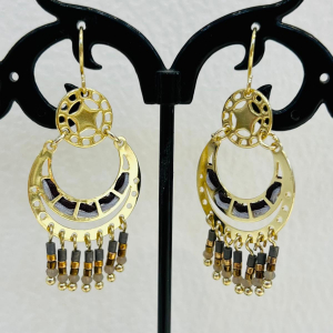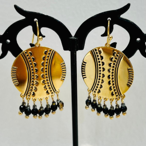 Découvrez ces somptueuses boucles d’oreilles fantaisies, conçues avec des motifs minutieusement détaillés et ornées de délicates petites perles suspendues. Leur design unique et sophistiqué en fait un accessoire incontournable pour toutes vos occasions spéciales. Dimensions : 3 cm de longueur. Couleur : doré.