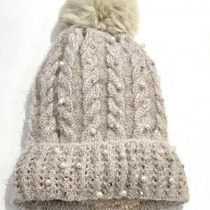 Découvrez notre bonnet beige, rehaussé de délicates perles scintillantes et de strass. Ce modèle chic arbore un adorable pompon en fausse fourrure sur le dessus, ajoutant une touche d’élégance. Parfait pour affronter les journées froides avec style et confort. Disponible en taille unique, ce bonnet saura vous accompagner tout au long de l’hiver. Dimension 30x20cm. Poids 135g