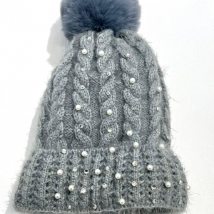 Découvrez notre bonnet gris, rehaussé de délicates perles scintillantes et de strass. Ce modèle chic arbore un adorable pompon en fausse fourrure sur le dessus, ajoutant une touche d’élégance. Parfait pour affronter les journées froides avec style et confort. Disponible en taille unique, ce bonnet saura vous accompagner tout au long de l’hiver. Dimension 30x20cm. Poids 135g