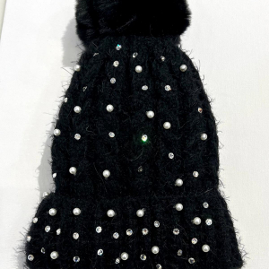 Découvrez notre bonnet noir, rehaussé de délicates perles scintillantes et de strass. Ce modèle chic arbore un adorable pompon en fausse fourrure sur le dessus, ajoutant une touche d’élégance. Parfait pour affronter les journées froides avec style et confort. Disponible en taille unique, ce bonnet saura vous accompagner tout au long de l’hiver. Dimension 30x20cm. Poids 135g