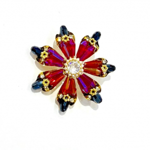 La Broche Fleur est une pièce raffinée et élégante, parée de pierres rouge profond et noir intense, qui entourent gracieusement une pierre centrale étincelante. Parfaite pour ajouter une touche de glamour et de sophistication à n’importe quelle tenue, cette broche est un incontournable de votre collection de bijoux. Dimensions : 5 cm x 5 cm.