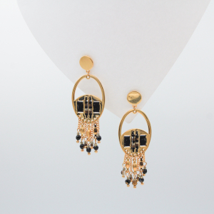 Découvrez ces somptueuses boucles d’oreilles fantaisies, conçues avec des motifs minutieusement détaillés et ornées de délicates petites perles suspendues. Leur design unique et sophistiqué en fait un accessoire incontournable pour toutes vos occasions spéciales. Dimensions : 3 cm de longueur. Couleur : doré.