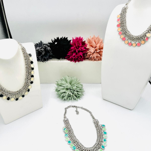 Le collier en métal fantaisie et en émail est un accessoire polyvalent qui ajoute une touche d’élégance à n’importe quelle tenue. Fabriqué avec soin, ce collier se compose de maillons en métal de haute qualité et d’un pendentif en émail coloré. Les motifs fantaisistes et les détails subtils de l’émail confèrent au collier une esthétique unique et attrayant.