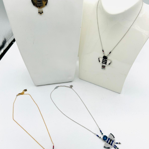 Le collier doré est orné de perles colorées et dorées, créant ainsi un magnifique contraste visuel. Les perles de différentes couleurs ajoutent de la vivacité à ce bijou, tandis que les perles dorées apportent une touche d’élégance et de sophistication.