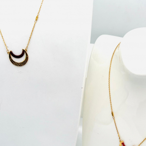 Le collier doré avec un pendentif de couleur et de petits perles assortis est un bijou élégant et tendance. Le doré apporte une touche de sophistication, tandis que le pendentif de couleur ajoute une touche de vibrance et d’originalité. Les petits perles assortis apportent une subtile harmonie à l’ensemble.