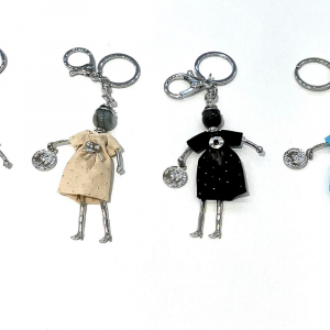 Découvrez nos ravissants porte-clés Poupées en métal, parfaits pour ajouter une touche d’élégance et de fantaisie à votre quotidien. Chaque porte-clés arbore une adorable petite poupée vêtue d’une robe élégante disponible en plusieurs couleurs attrayantes : vert, beige, noir et bleu. Chaque poupée tient un sac à main assorti, pour une allure encore plus chic. Ces porte-clés mesurent environ 10…