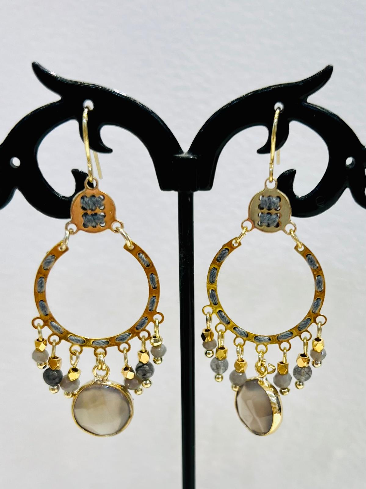 Sublimez votre allure avec ces boucles d’oreilles pendantes dorées, finement décorées de petites pierres scintillantes et de pendentifs en cristal. Ces magnifiques bijoux ajoutent une touche d’élégance et de sophistication à n’importe quelle tenue. Leur design raffiné et leur éclat irrésistible en font un choix incontournable pour les occasions spéciales ou pour sublimer votre quotidien. Longueur: 5 cm. Poids: 10 g.