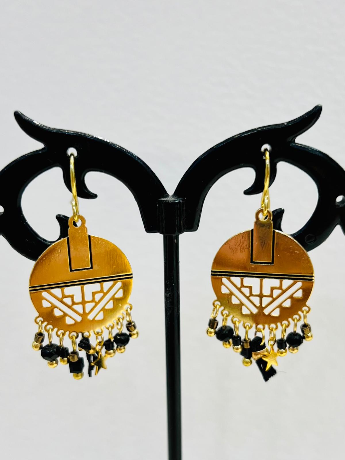 Découvrez l’élégance intemporelle de ces boucles d’oreilles en doré, conçues en forme de disques raffinés et agrémentées de délicates perles suspendues. Idéales pour rehausser n’importe quelle tenue avec une sophistication contemporaine, ces boucles d’oreilles mesurent 3 cm de diamètre et sont disponibles dans une teinte dorée éclatante.