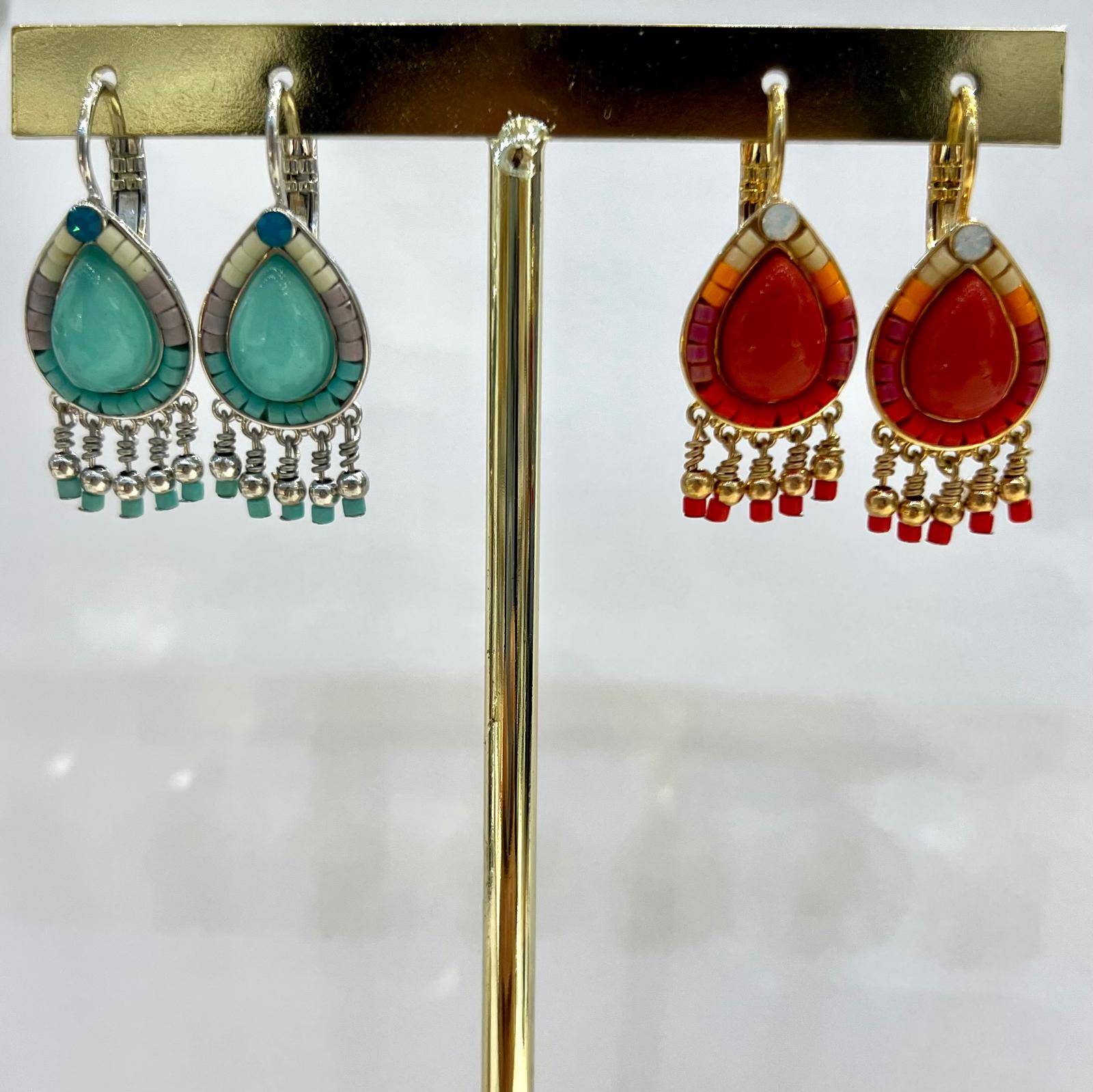 Ces magnifiques boucles d’oreilles se distinguent par leur élégant design en goutte. Au centre, une superbe pierre est sublimée par une combinaison de perles multicolores et de petits pendentifs métalliques qui ajoutent une note scintillante. Idéales pour toute occasion, ces boucles d’oreilles attireront tous les regards et apporteront une touche d’originalité à votre style. Longueur: 5 cm.