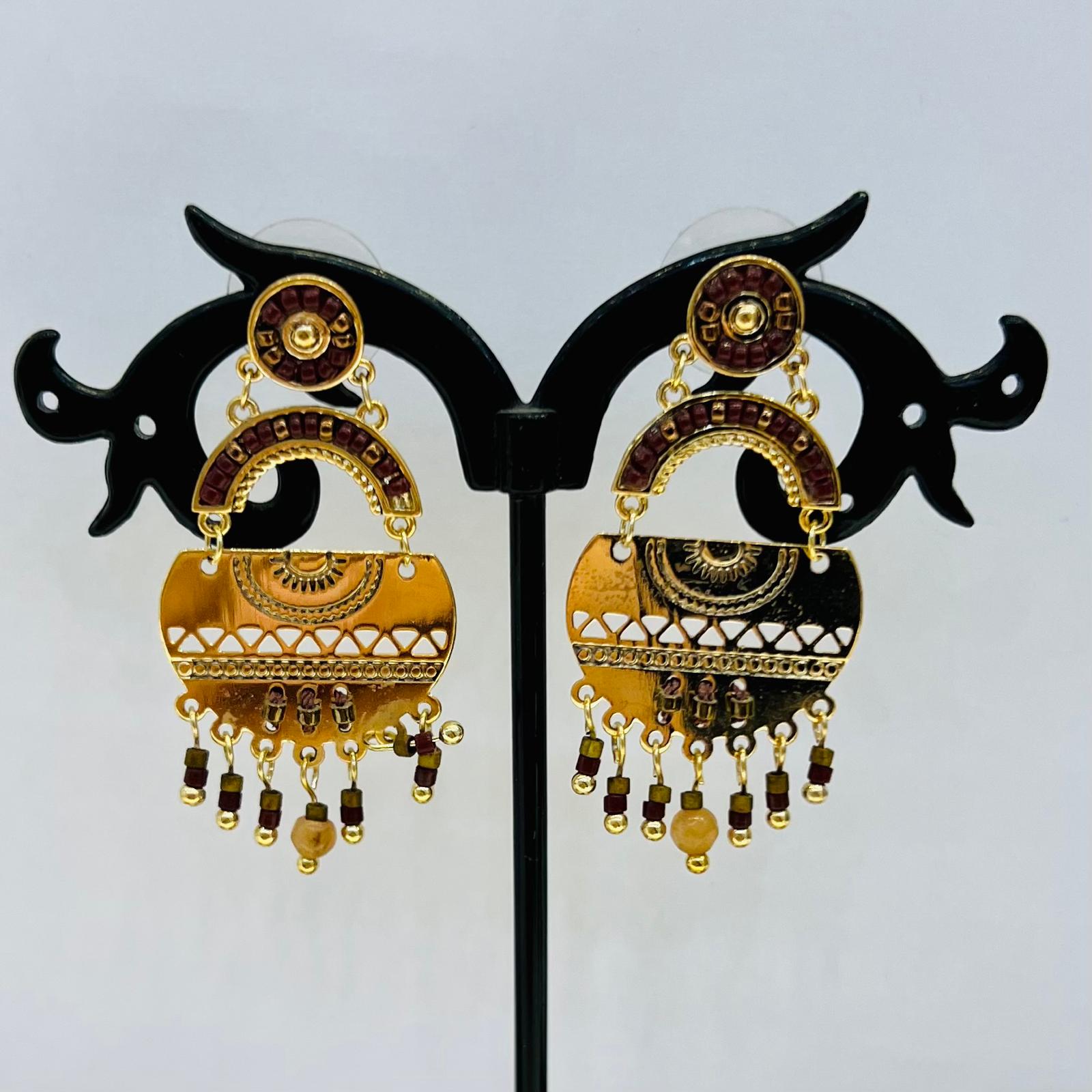 Découvrez l’élégance artisanale avec ces boucles d’oreilles uniques dorées . Ornées de perles délicates et de motifs complexes, ces bijoux ajoutent une touche sophistiquée à n’importe quelle tenue. Parfaites pour un look chic et raffiné. Dimensions: 5 cm de long. Matériaux: alliage de haute qualité, perles naturelles.