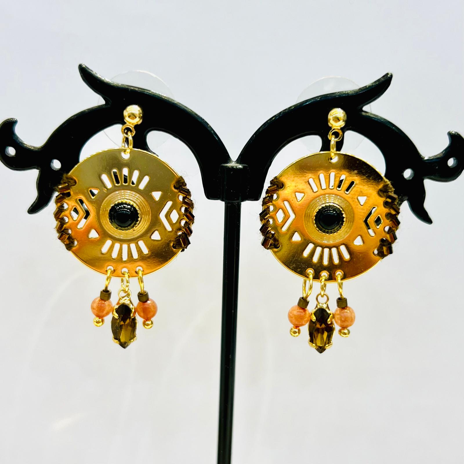 Découvrez nos somptueuses boucles d’oreilles doré, rehaussées de magnifiques perles et d’un délicat travail. Ces bijoux d’exception sont idéals pour sublimer vos tenues lors d’occasions spéciales ou pour apporter une touche d’élégance à votre collection personnelle. Chaque boucle d’oreille mesure environ 3 cm de longueur.
