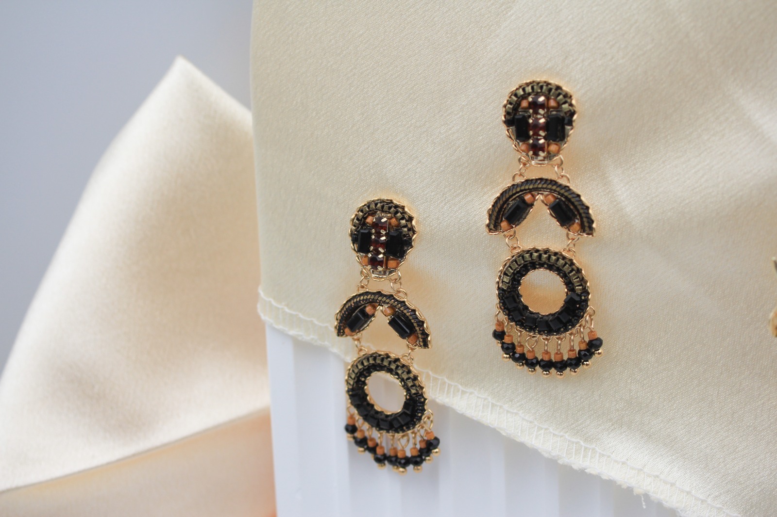 Succombez au charme de ces boucles d’oreilles pendantes en noire et dorée, conçues pour sublimer toutes vos tenues avec une touche d’élégance irrésistible. Leur design unique et raffiné en fait le choix parfait pour des événements spéciaux ou des soirées chic.