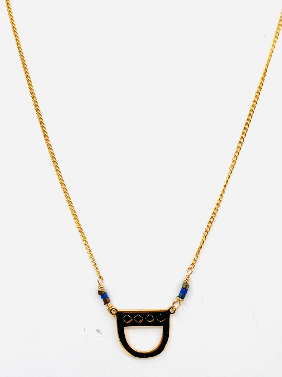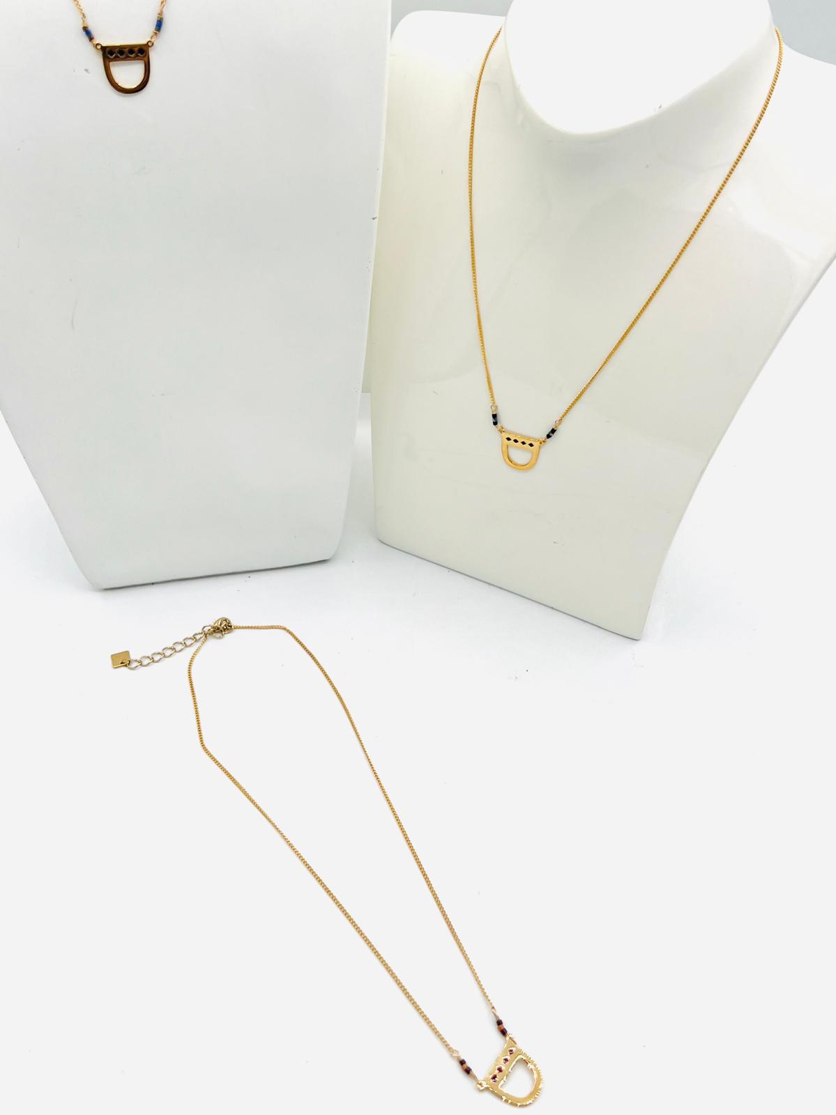 Ce collier en métal doré est orné d’un pendentif doré et de délicates petites perles qui rehaussent l’élégance de l’ensemble. Avec son design raffiné et sa finition brillante, ce bijou apportera une touche de glamour à n’importe quelle tenue. Sa chaîne délicate s’ajuste parfaitement autour de votre cou. Les petites perles ajoutent une touche de sophistication.