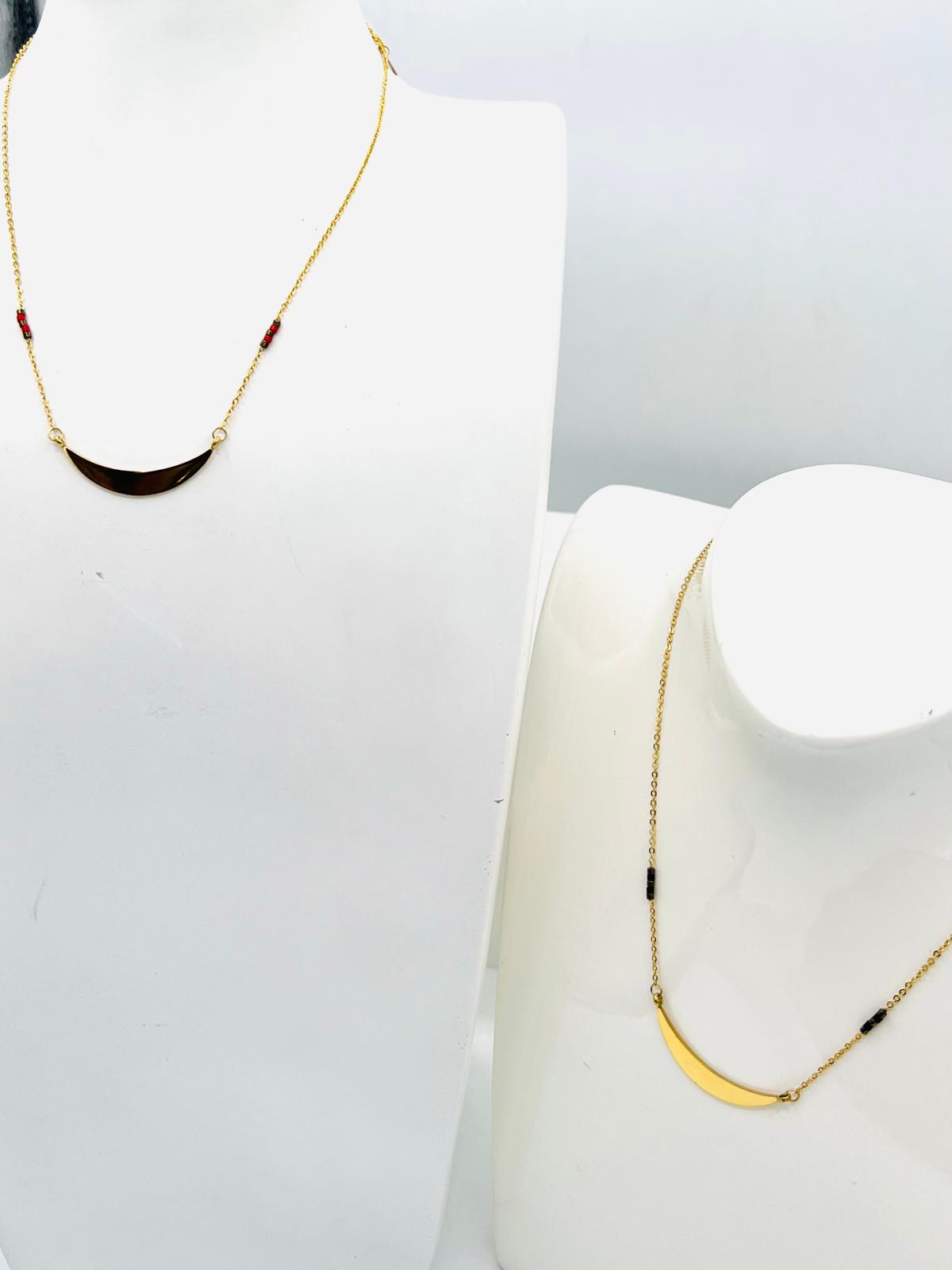 Ce collier en métal doré est orné d’un pendentif doré et de délicates petites perles qui rehaussent l’élégance de l’ensemble. Avec son design raffiné et sa finition brillante, ce bijou apportera une touche de glamour à n’importe quelle tenue. Sa chaîne délicate s’ajuste parfaitement autour de votre cou. Les petites perles ajoutent une touche de sophistication.
