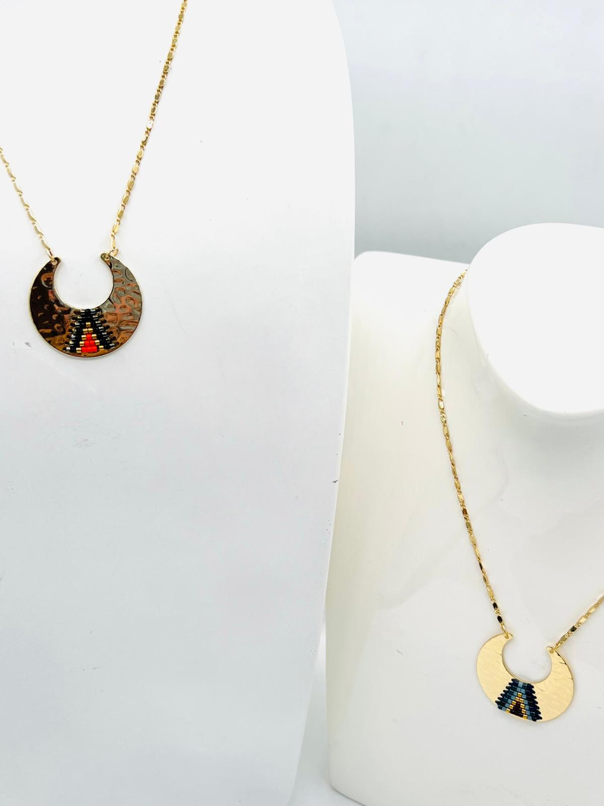 Ce collier en métal doré est orné d’un pendentif doré et de délicates petites perles qui rehaussent l’élégance de l’ensemble. Avec son design raffiné et sa finition brillante, ce bijou apportera une touche de glamour à n’importe quelle tenue. Sa chaîne délicate s’ajuste parfaitement autour de votre cou. Les petites perles ajoutent une touche de sophistication.