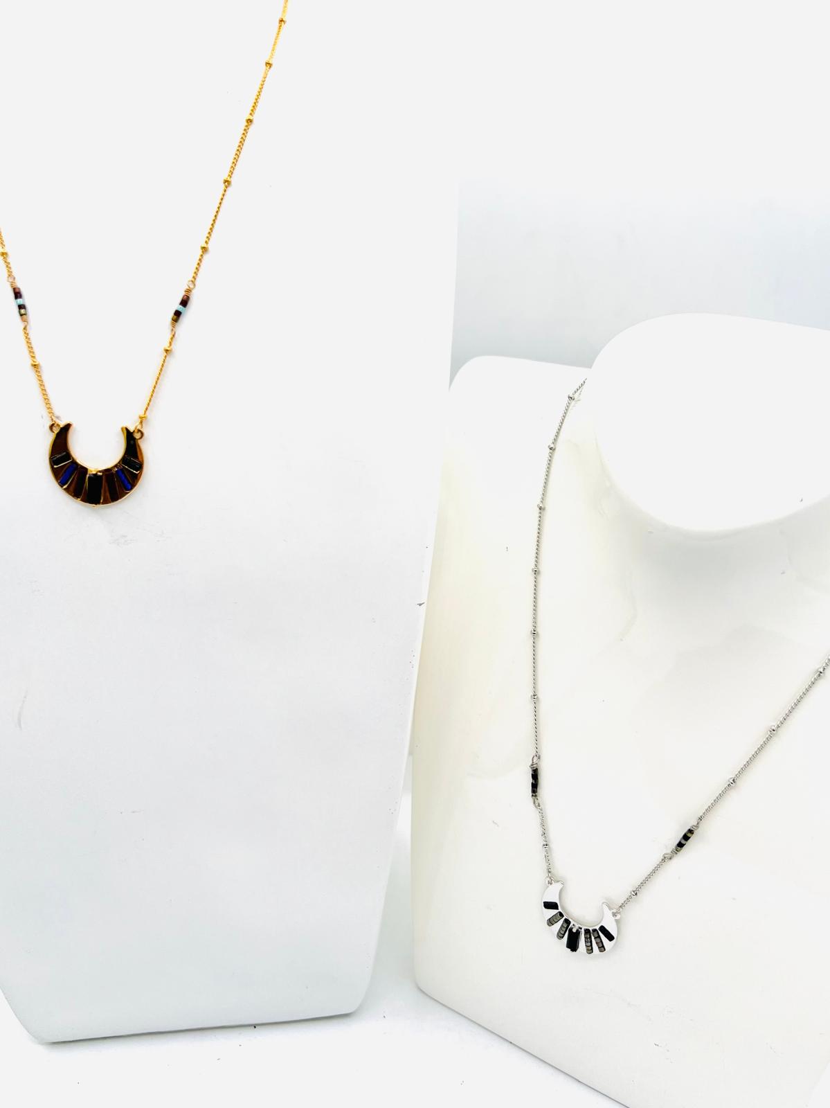 Le collier est un magnifique bijou en métal doré ou argenté, doté d’un ravissant pendentif en forme de croissant de lune. Ce collier apportera une touche d’élégance et de mystère à toutes vos tenues. Grâce à sa chaîne délicate et à sa finition soignée, ce collier sera non seulement un accessoire tendance, mais aussi un véritable bijou intemporel dans votre collection.