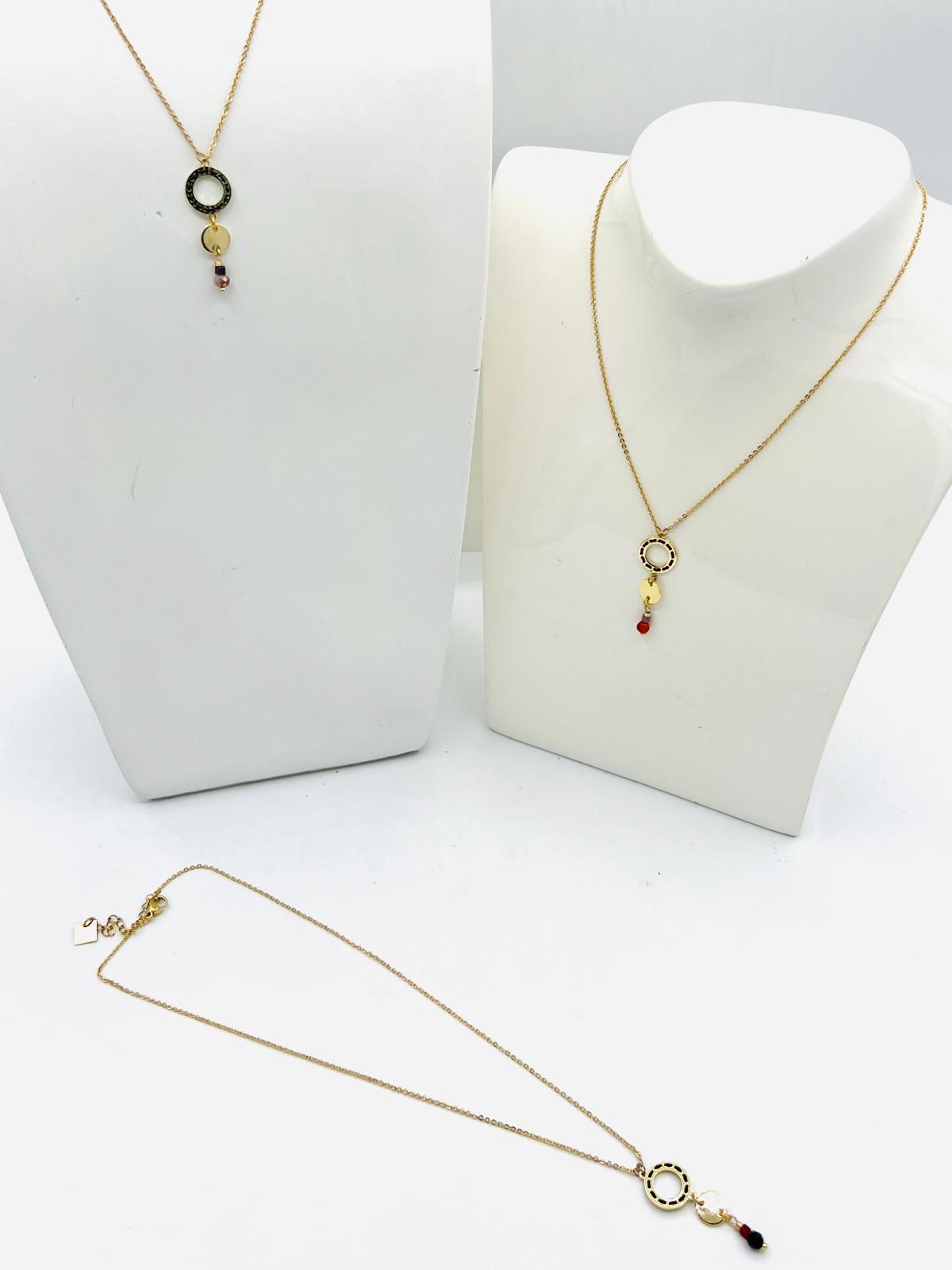 Le collier doré avec pendentif rond est un accessoire élégant et raffiné qui ajoute une touche de sophistication. Le pendentif rond, suspendu gracieusement au centre du collier, attire également l’attention avec son design simple mais élégant. Ce bijou polyvalent peut être porté pour toutes les occasions.