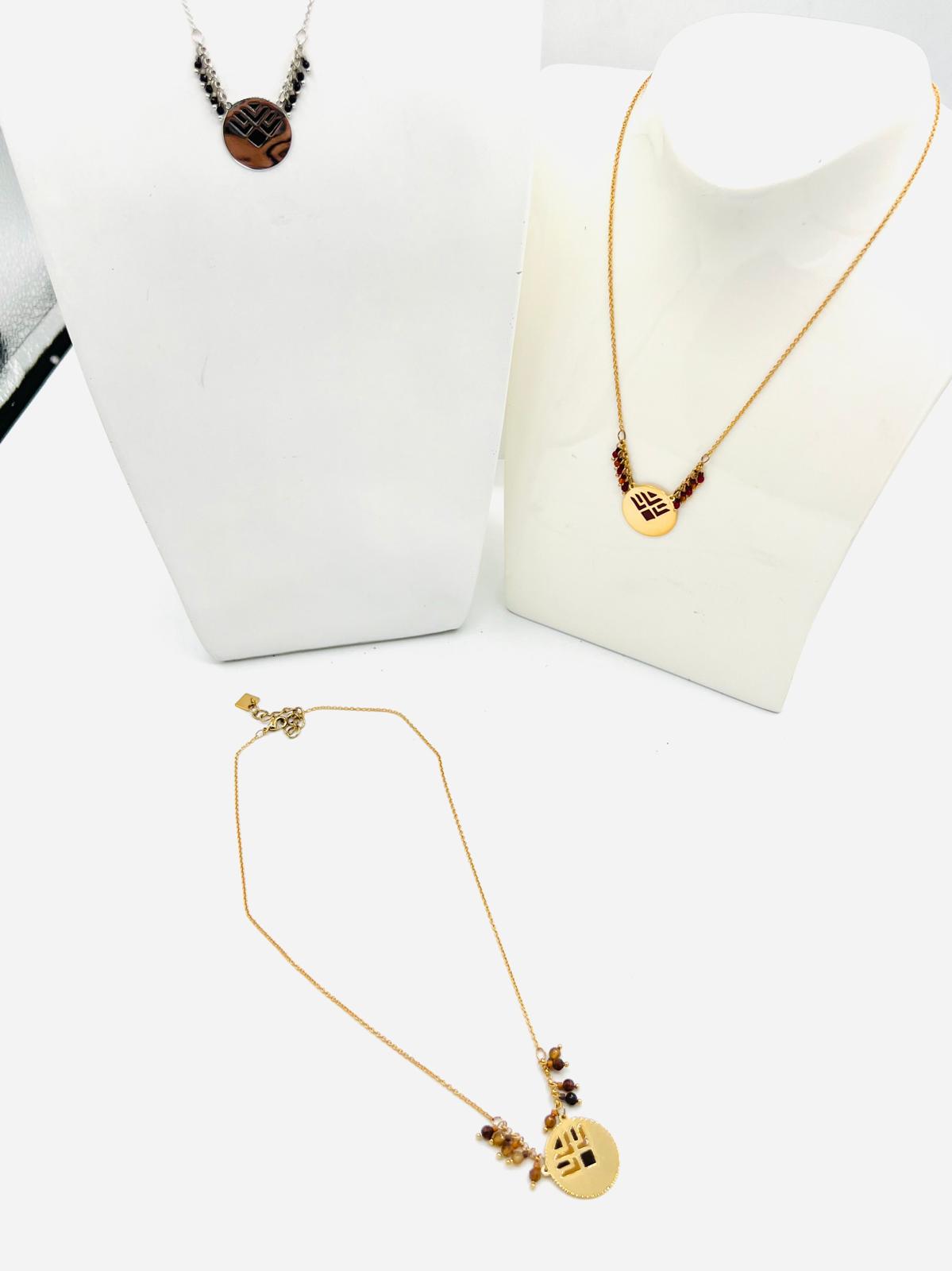 Découvrez ce somptueux collier avec pendentif, un mélange exquis de style et d’élégance. La chaîne soutient un pendentif circulaire détaillé avec des accents et de délicates petites perles. Ce bijou captivant est l’accessoire parfait pour ajouter une touche de sophistication à n’importe quelle tenue. Longueur de la chaîne : 45 cm. Dimensions du pendentif : 2 cm de diamètre.
