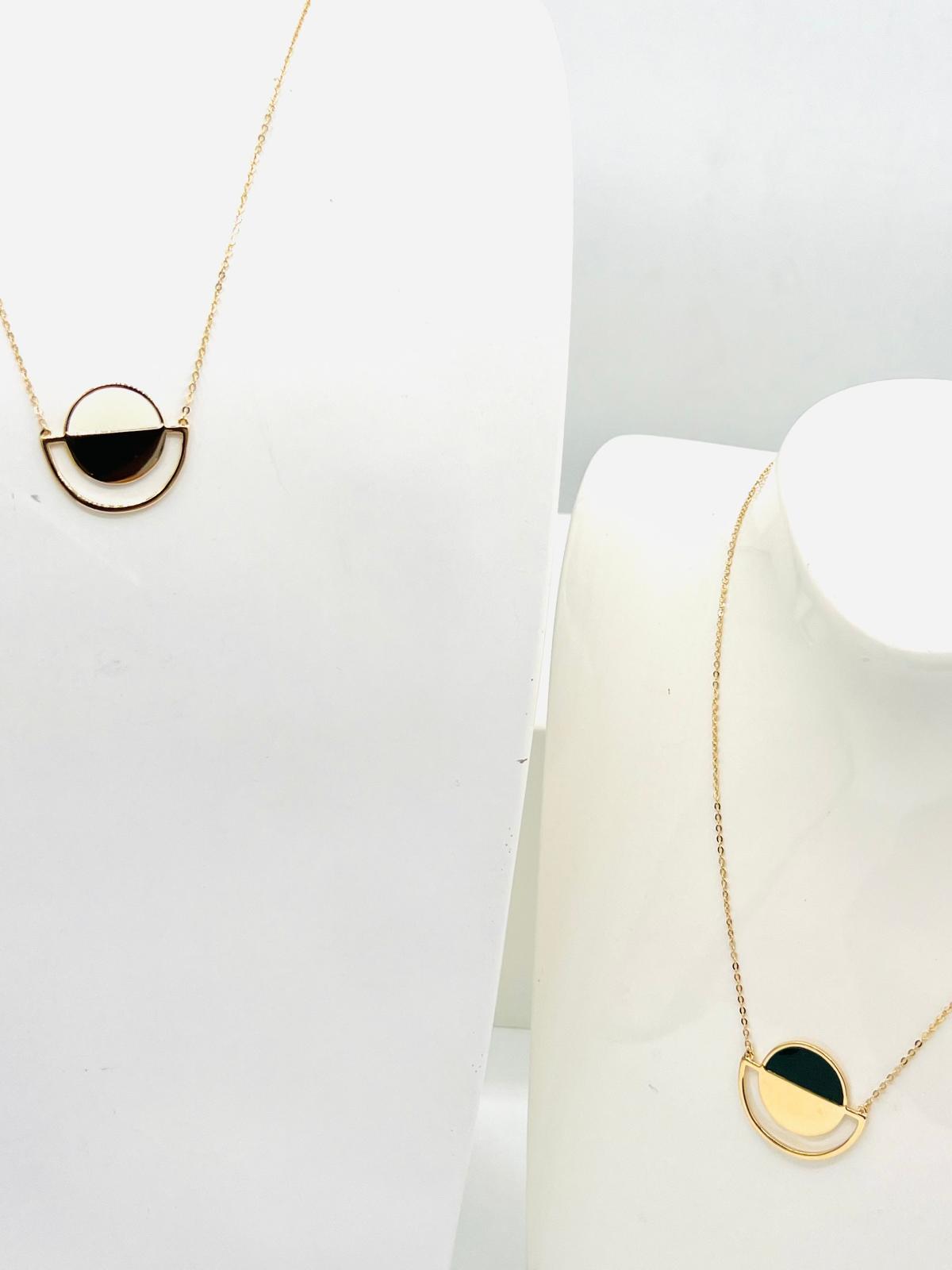 Ce collier au design simple mais chic présente un pendentif rond doré, mettant en valeur sa brillance et son éclat. La particularité de ce bijou réside dans la présence d’une couleur différente, ce qui lui donne une allure unique et originale. Que vous choisissiez un pendentif blanc, bleu, rose, vert , ce collier apportera une note de charme et de modernité à votre style.