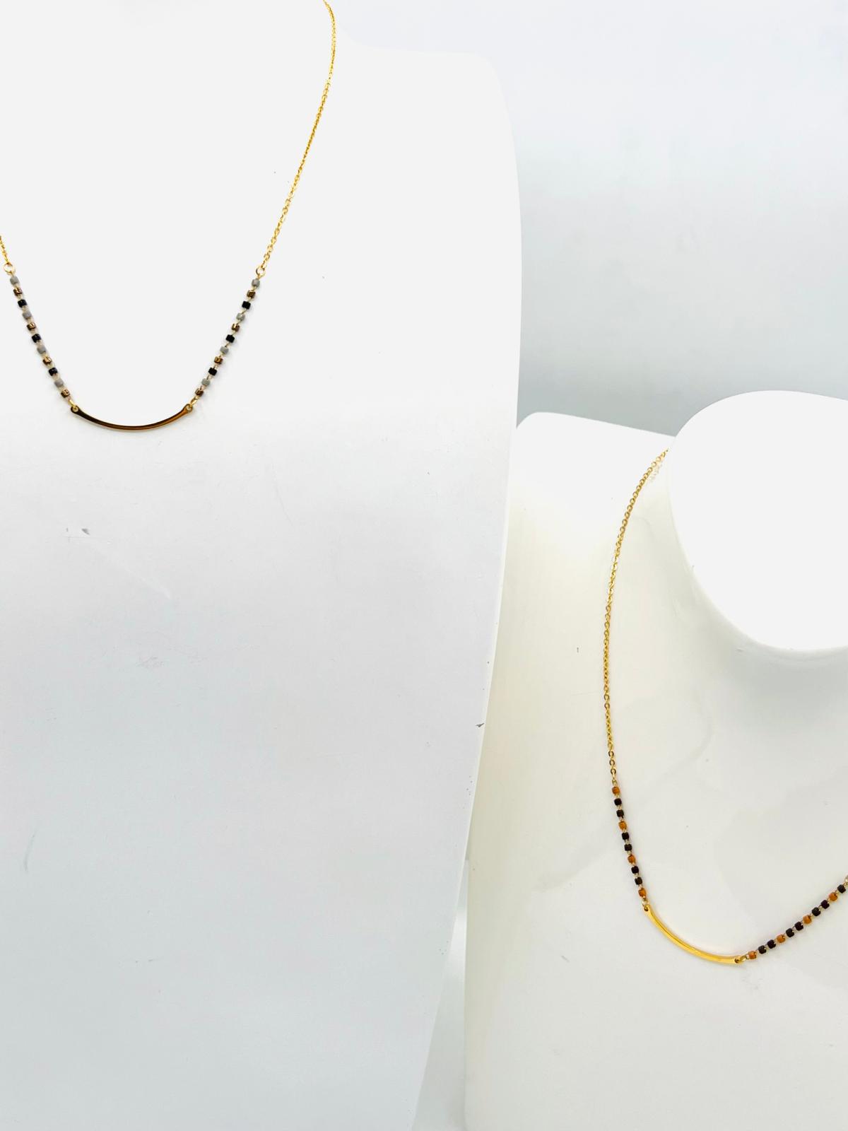 Ce collier en métal doré est orné d’un pendentif et de délicates petites perles qui rehaussent l’élégance de l’ensemble. Avec son design raffiné et sa finition brillante, ce bijou apportera une touche de glamour à n’importe quelle tenue. Sa chaîne délicate s’ajuste parfaitement autour de votre cou. Les petites perles ajoutent une touche de sophistication.
