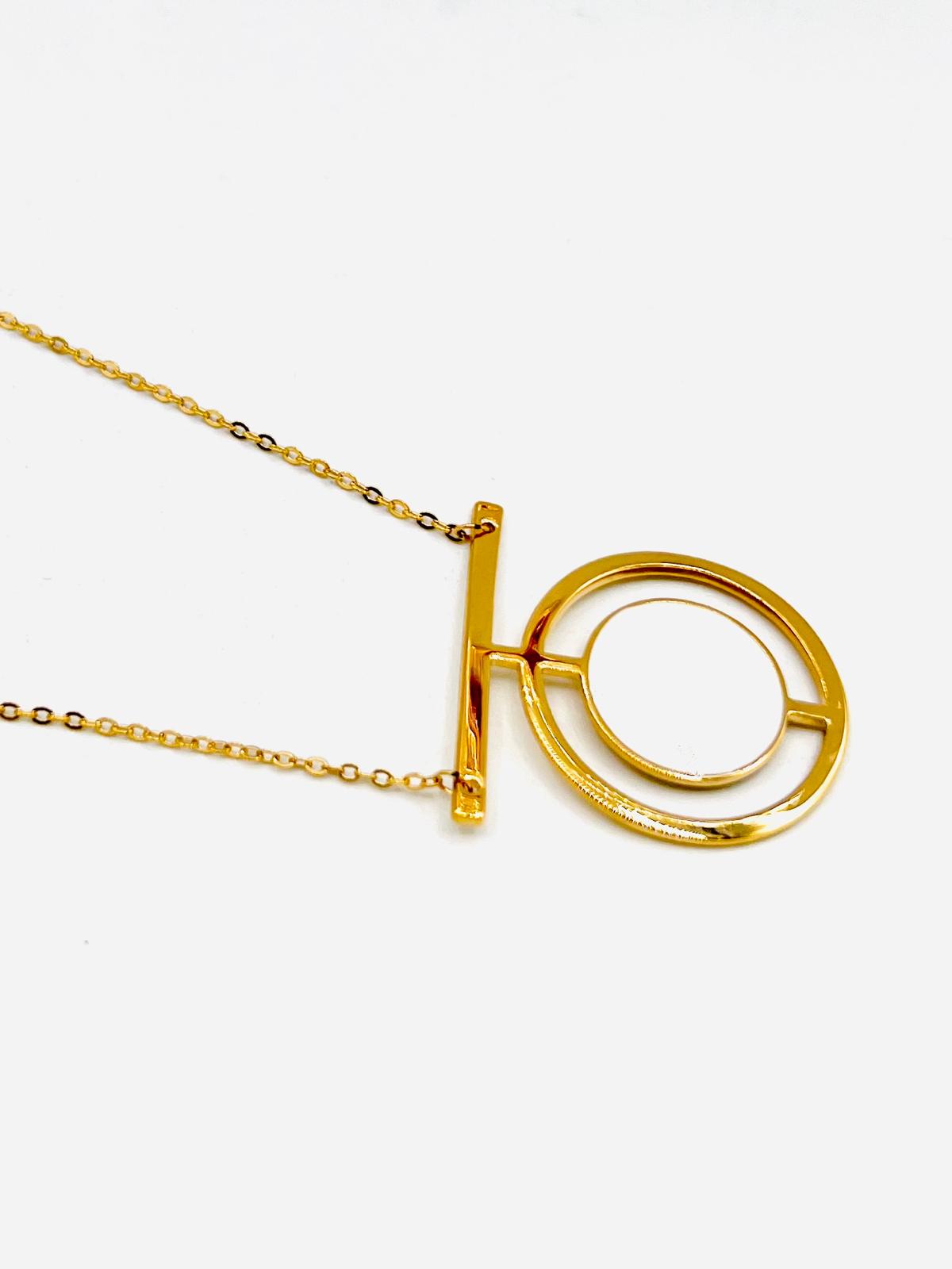 Orné d’un pendentif circulaire et d’une barre horizontale, ce bijou unique est le complément parfait pour sublimer toutes vos tenues, que ce soit pour une soirée chic ou pour un look quotidien raffiné. Ce collier est disponible en doré ou en argenté et sa longueur ajustable permet de l’adapter à votre style préféré. Ajoutez dès maintenant ce trésor à votre collection et laissez-vous séduire par son charme sophistiqué.