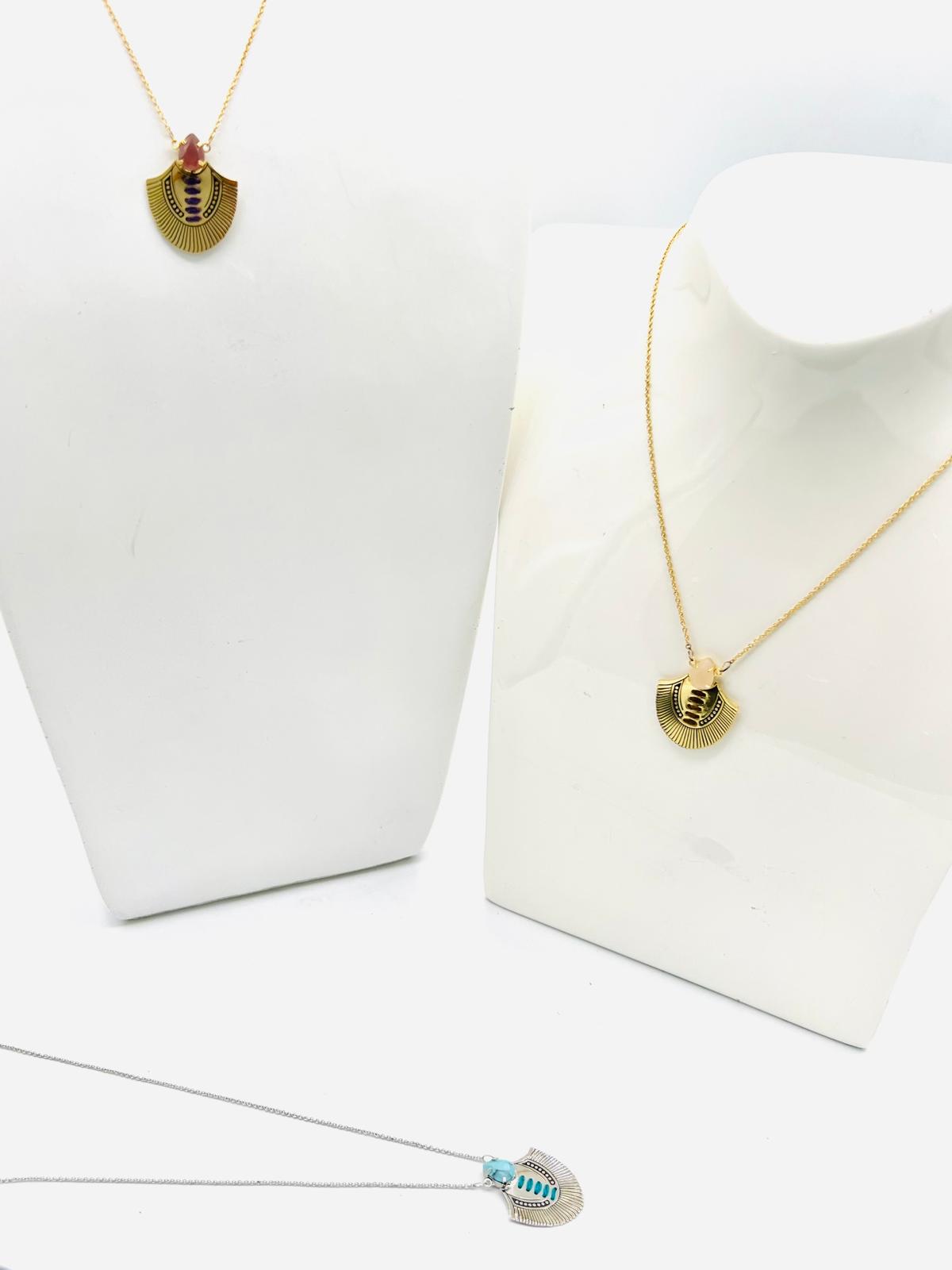 Ce collier en métal doré ou argenté est orné d’un pendentif et de délicates petites perles qui rehaussent l’élégance de l’ensemble. Avec son design raffiné et sa finition brillante, ce bijou apportera une touche de glamour à n’importe quelle tenue. Sa chaîne délicate s’ajuste parfaitement autour de votre cou. Les petites perles ajoutent une touche de sophistication.