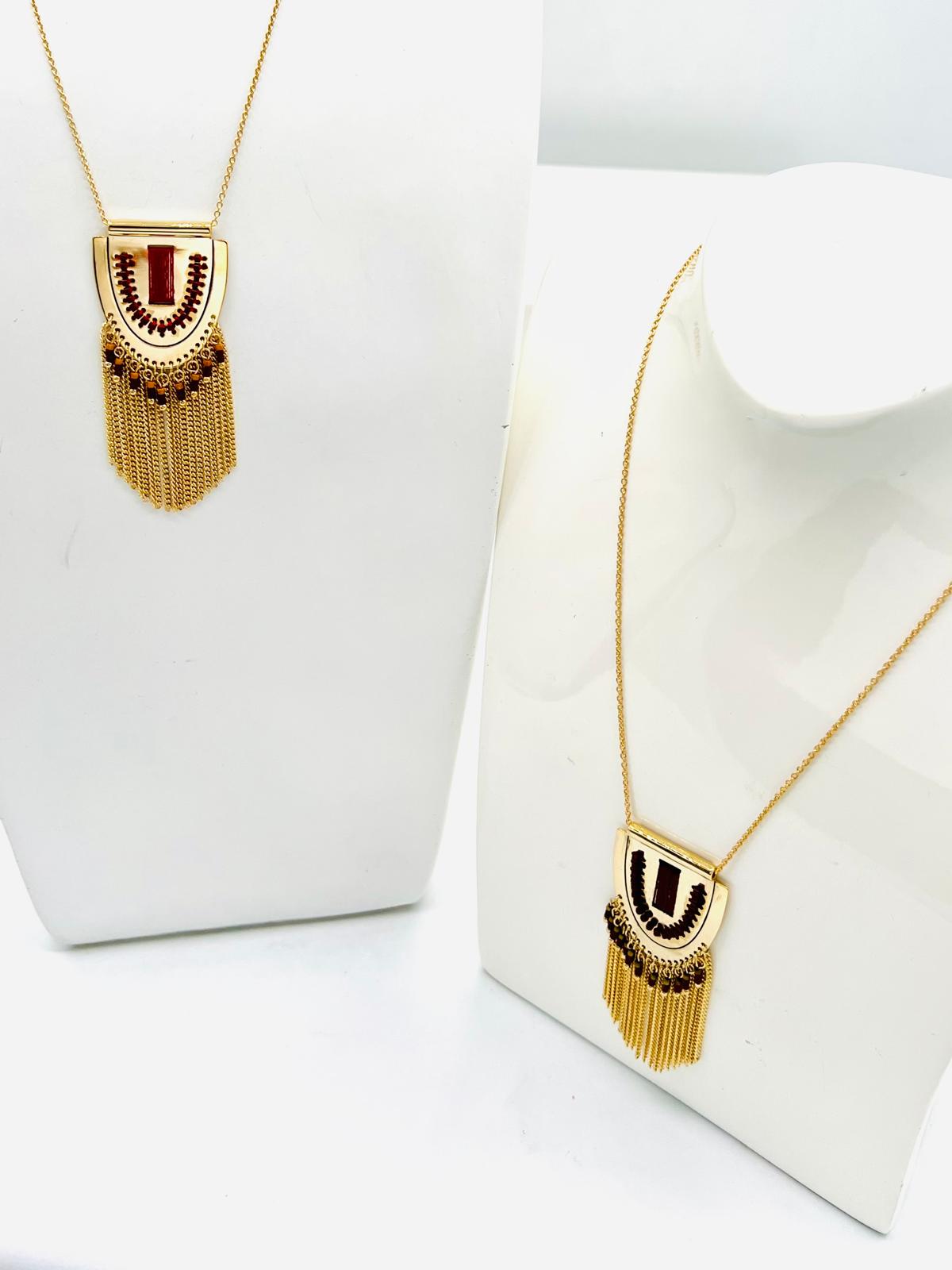 Le collier doré est un accessoire élégant et raffiné qui ajoute une touche de sophistication. Le pendentif, suspendu gracieusement au centre du collier, attire également l’attention avec son design simple mais élégant.