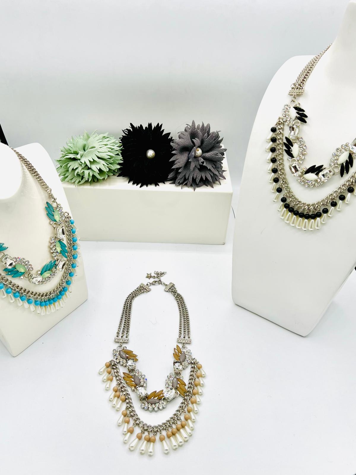 Ce collier est composé de perles et de strass scintillants, qui ajoutent une touche de glamour à n’importe quelle tenue. Les perles sont disposées en deux rangées, créant un effet de superposition sophistiqué. Avec sa finition en métal fantaisie, ce collier ajoute une élégance moderne à toutes les occasions.