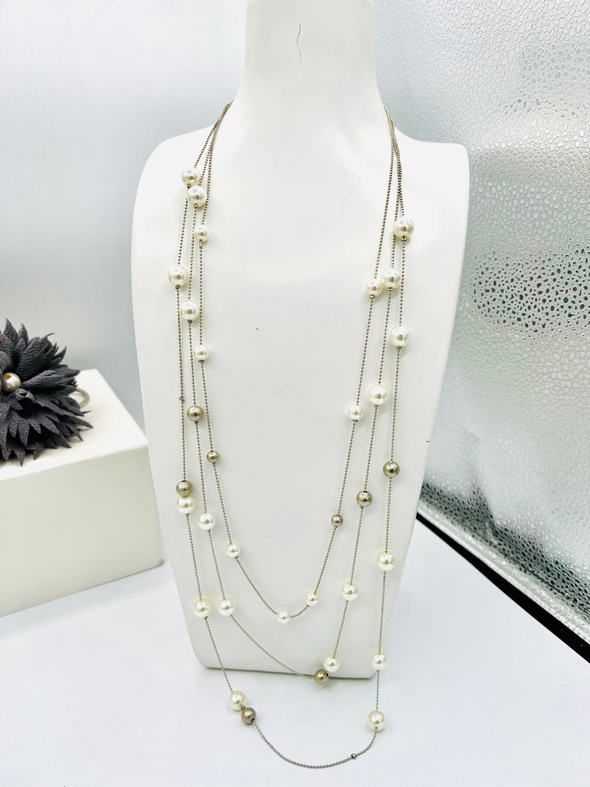 Sublimez votre look avec notre collier à plusieurs rangs, un bijou d’exception qui séduira les amateurs de mode. Composé de délicates petites perles blanches et de maillons fins en métal, ce collier offre une allure chic et élégante. Idéal pour rehausser une tenue de jour comme de soirée. Longueur ajustable pour un confort optimal. Découvrez le glamour à chaque instant avec ce bijou raffiné.