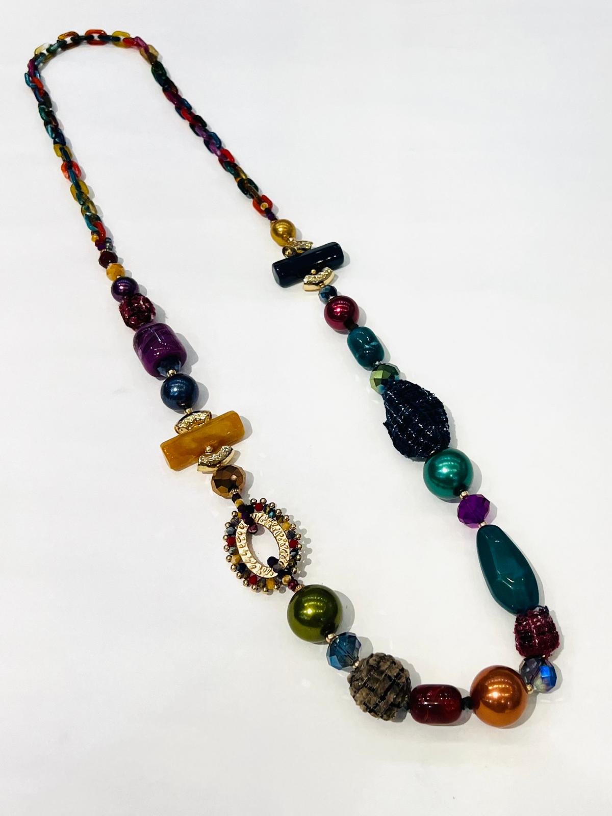 Ce bijou envoûtant est sublimé par une sélection exquise de perles aux nuances profond, magnifiquement rehaussées de fins détails dorés. Idéal pour sublimer n’importe quelle tenue, ce collier ajoutera une touche de glamour et de sophistication.
