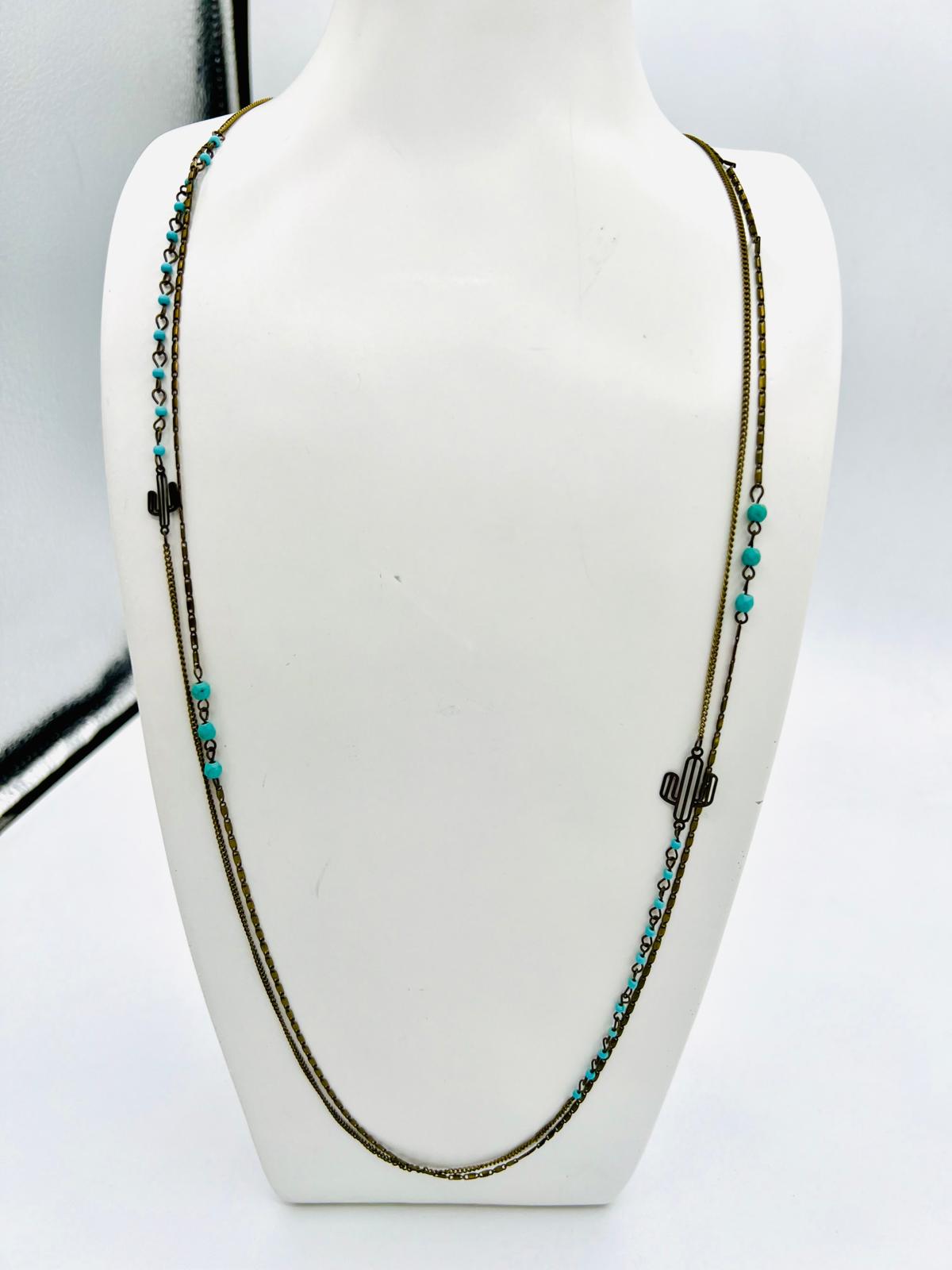 Découvrez notre somptueux collier long avec perles vertes. Ce bijou exquis est confectionné avec une fine chaîne dorée, parsemée de délicates perles bleues ou vertes et de motifs subtils. Idéal pour apporter une touche d’élégance et de sophistication à toutes vos tenues, que ce soit pour une sortie décontractée ou un événement spécial. Longueur du collier : 65 cm.