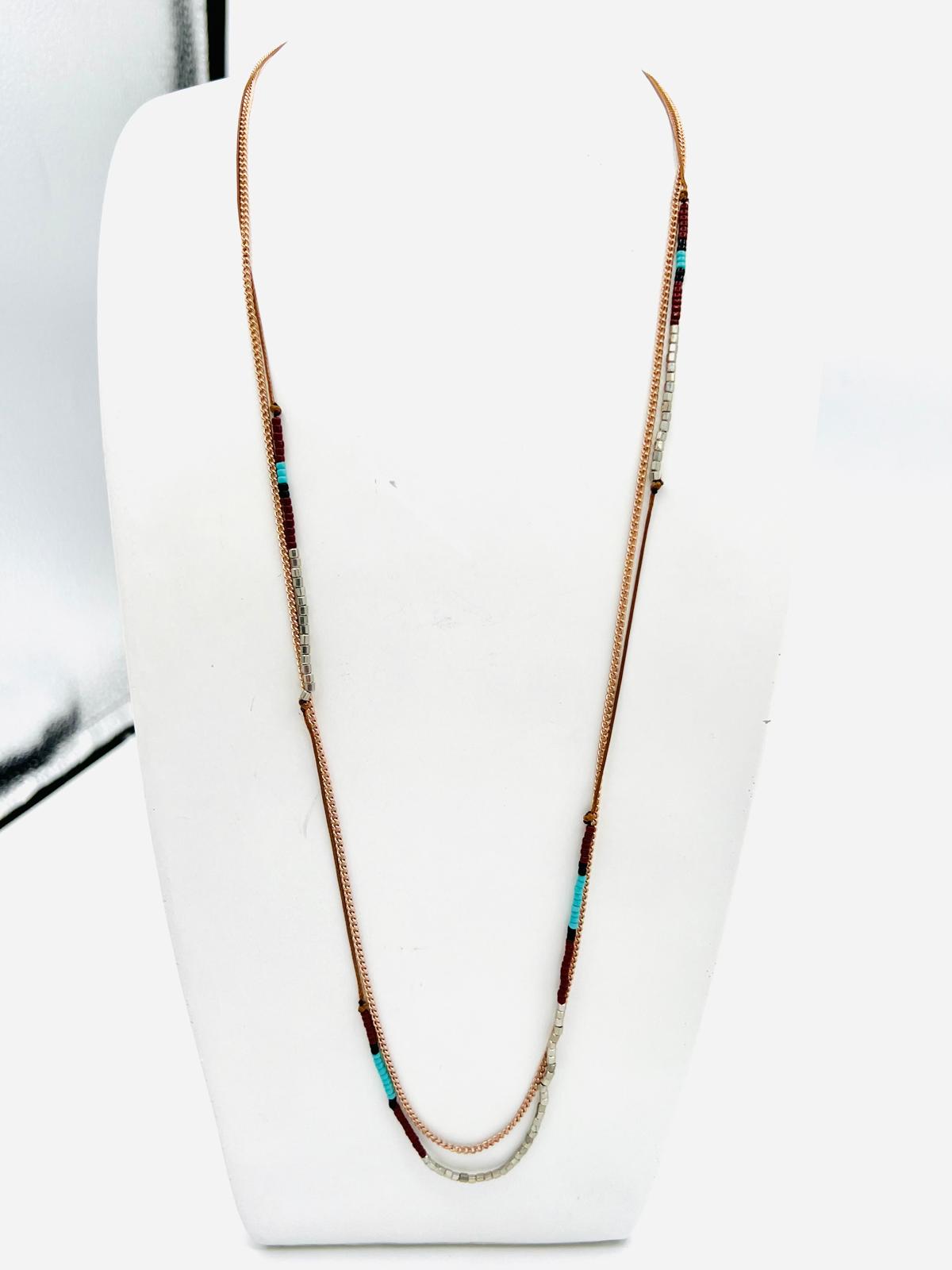 Découvrez notre collier élégant en perles, une pièce incontournable pour toute amoureuse de bijoux. Ce magnifique collier se compose d’une chaîne fine et longue, parée de perles éclatantes aux couleurs variées, dont de superbes teintes turquoise et marron. Longueur 70 cm.